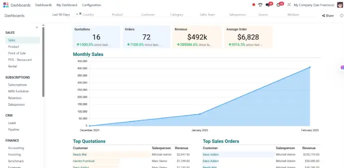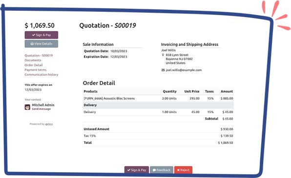 Odoo Sales helps businesses manage their sales orders, customer service, and E-Commerce shop all in one place. It also allows you to create professional and interactive quotations to impress your clients.